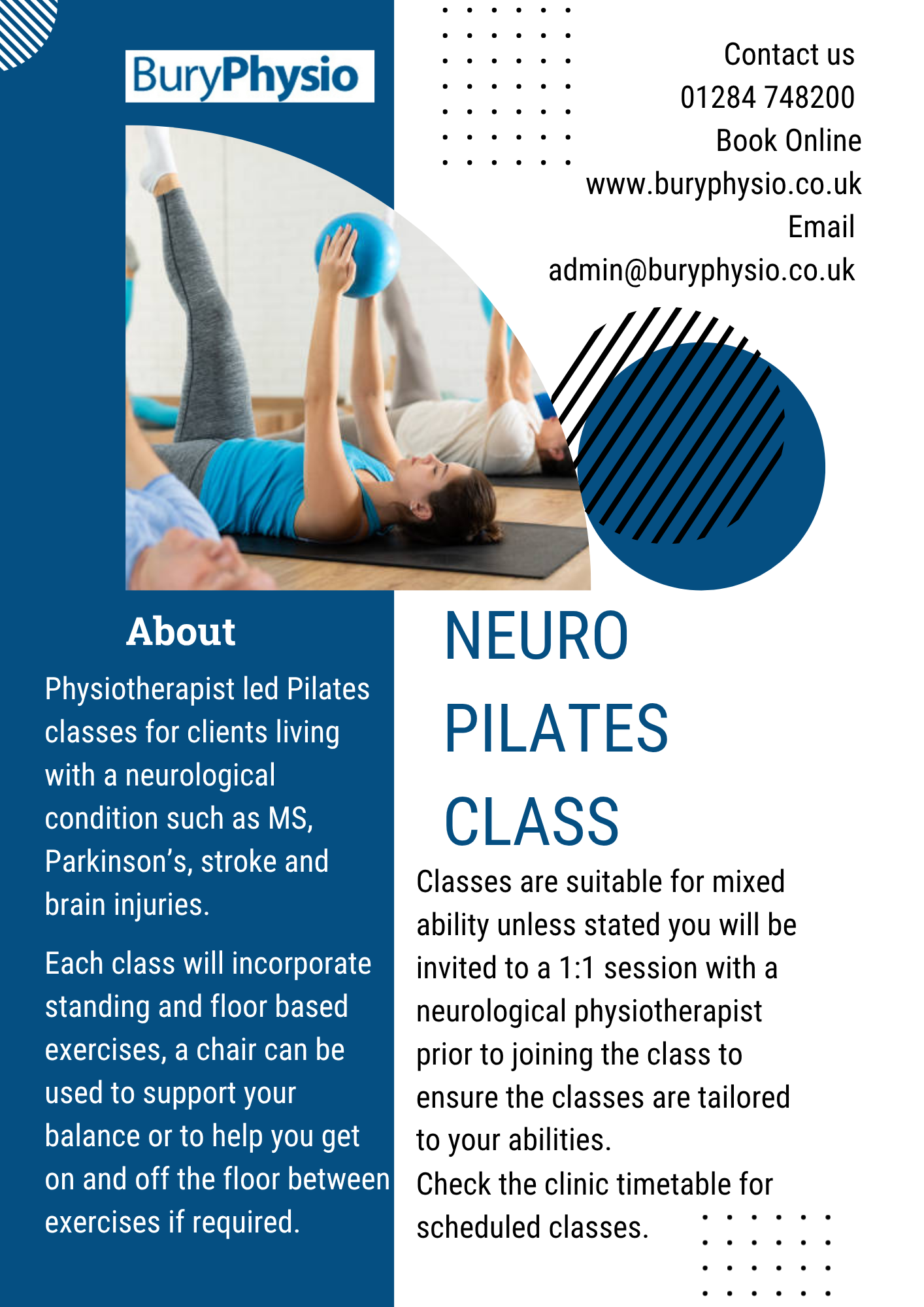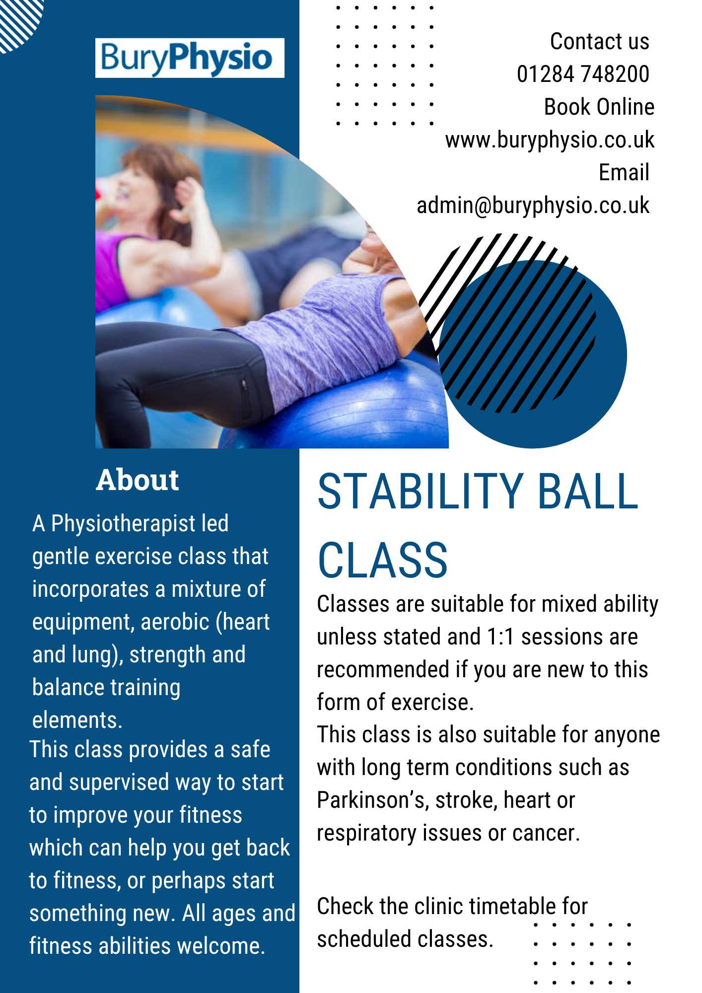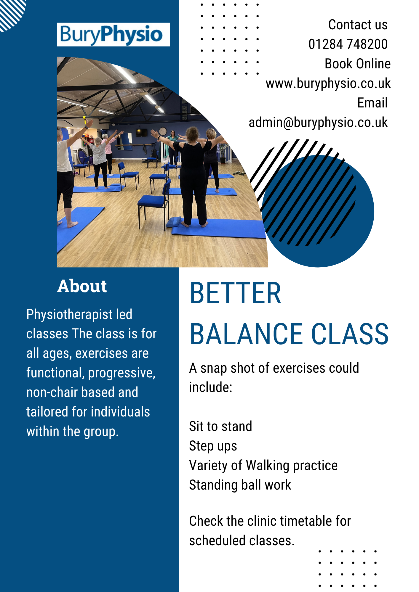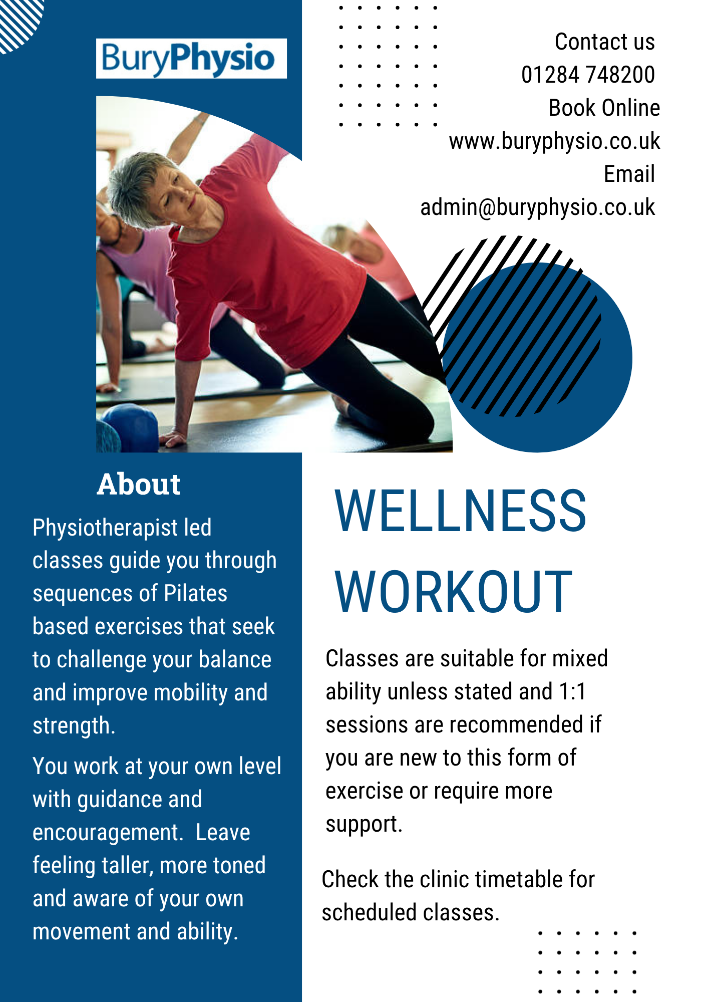 29th October 2025 Classes at Bury Physio Visit out Classes page with information about the current class schedule.