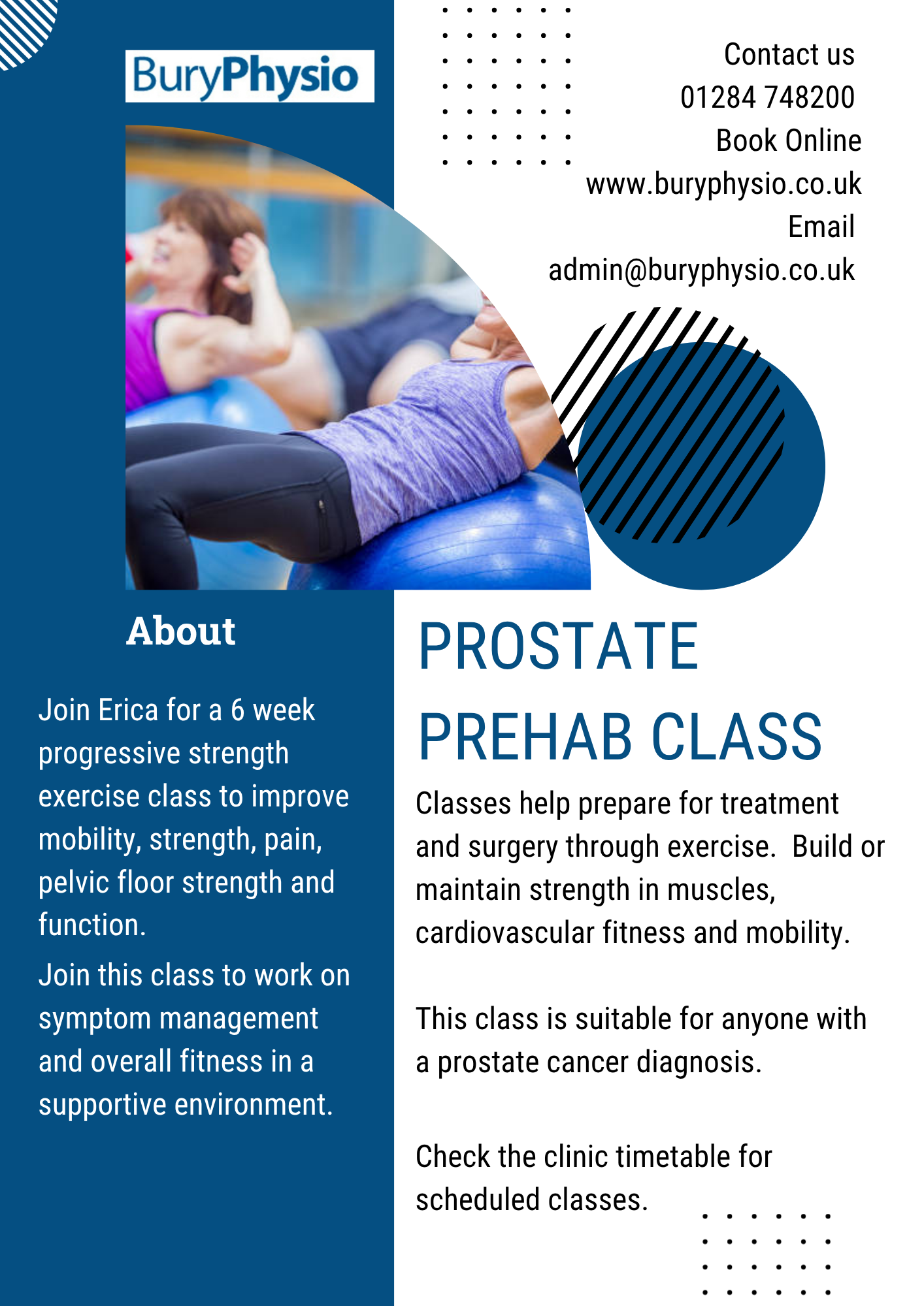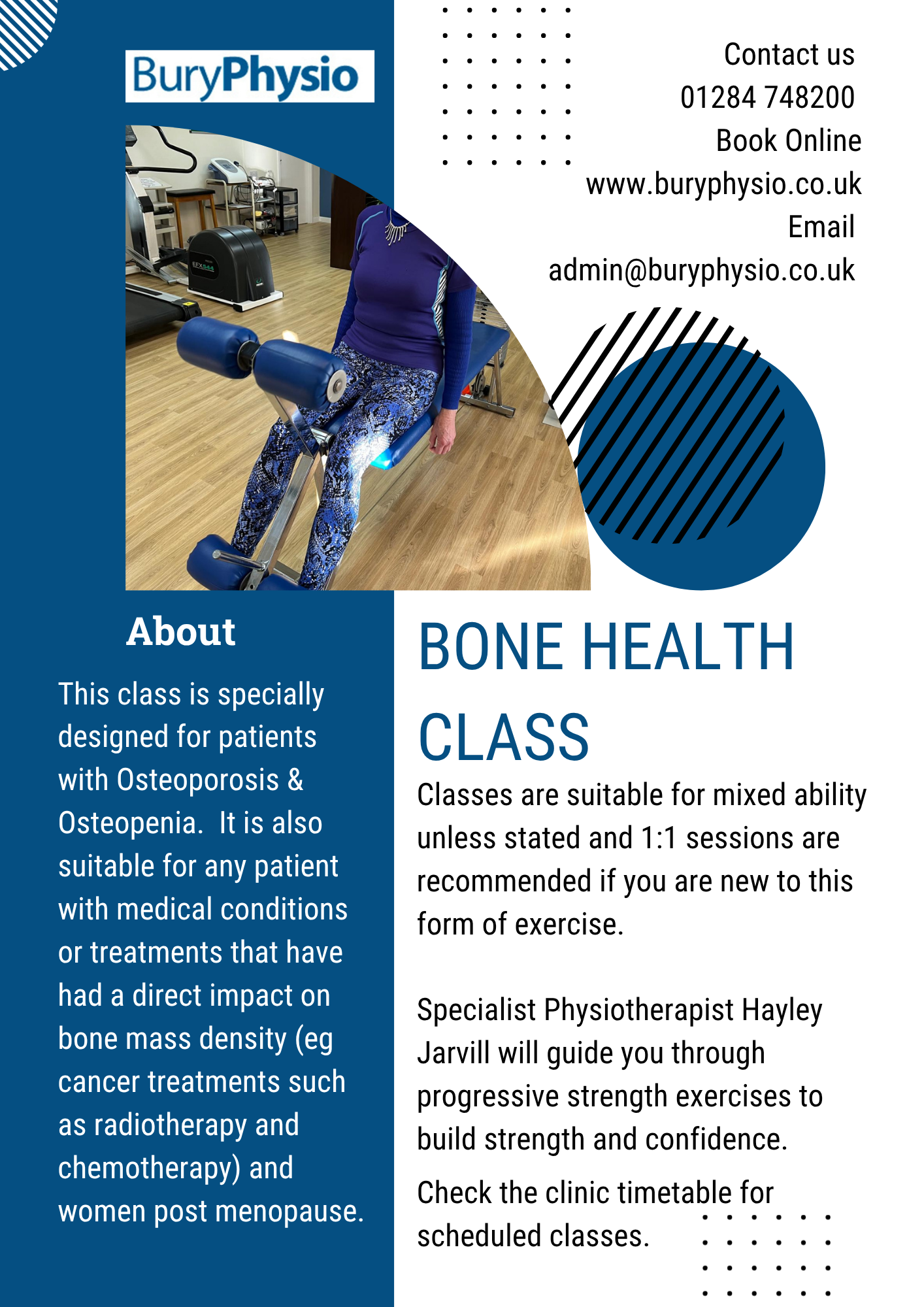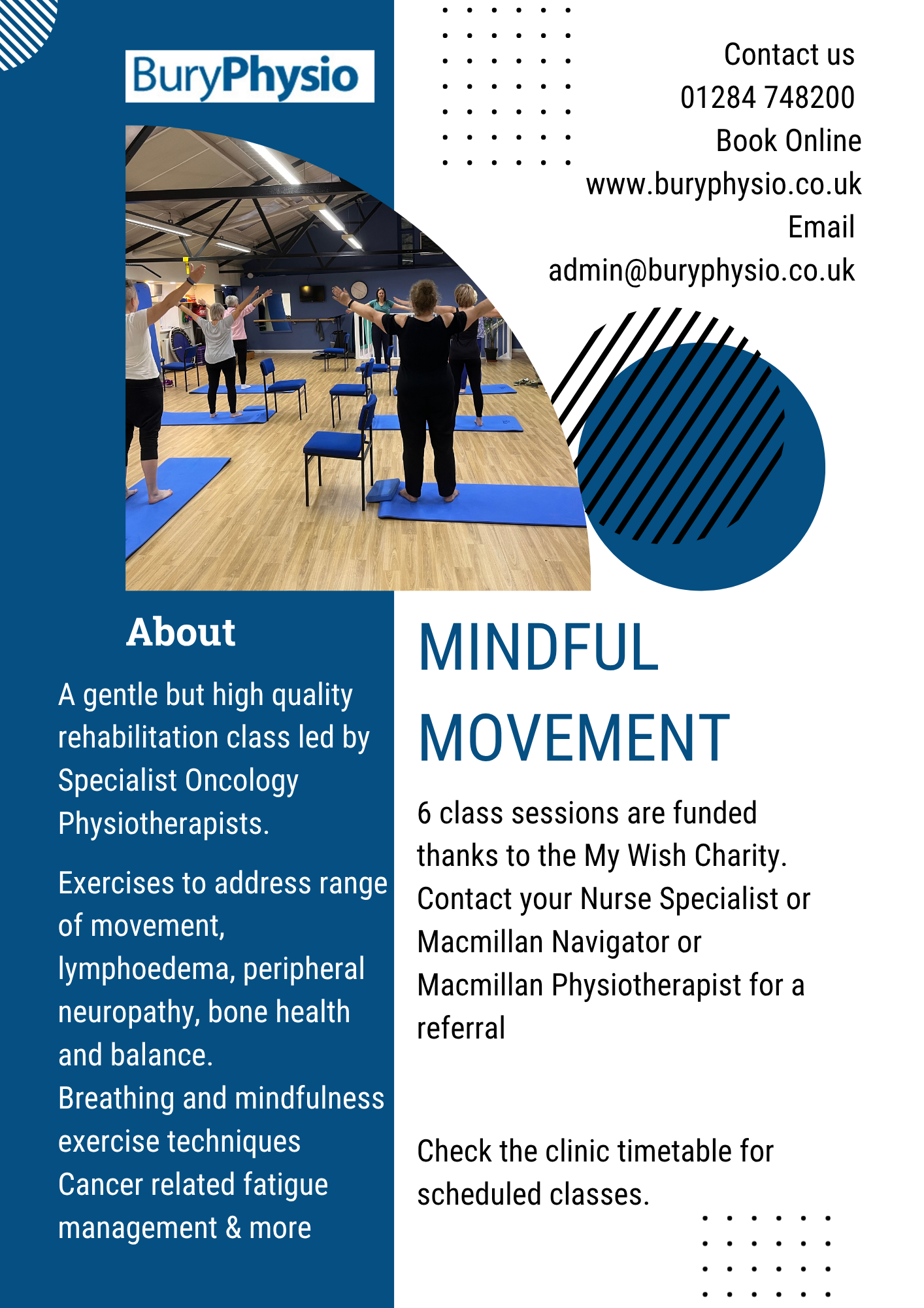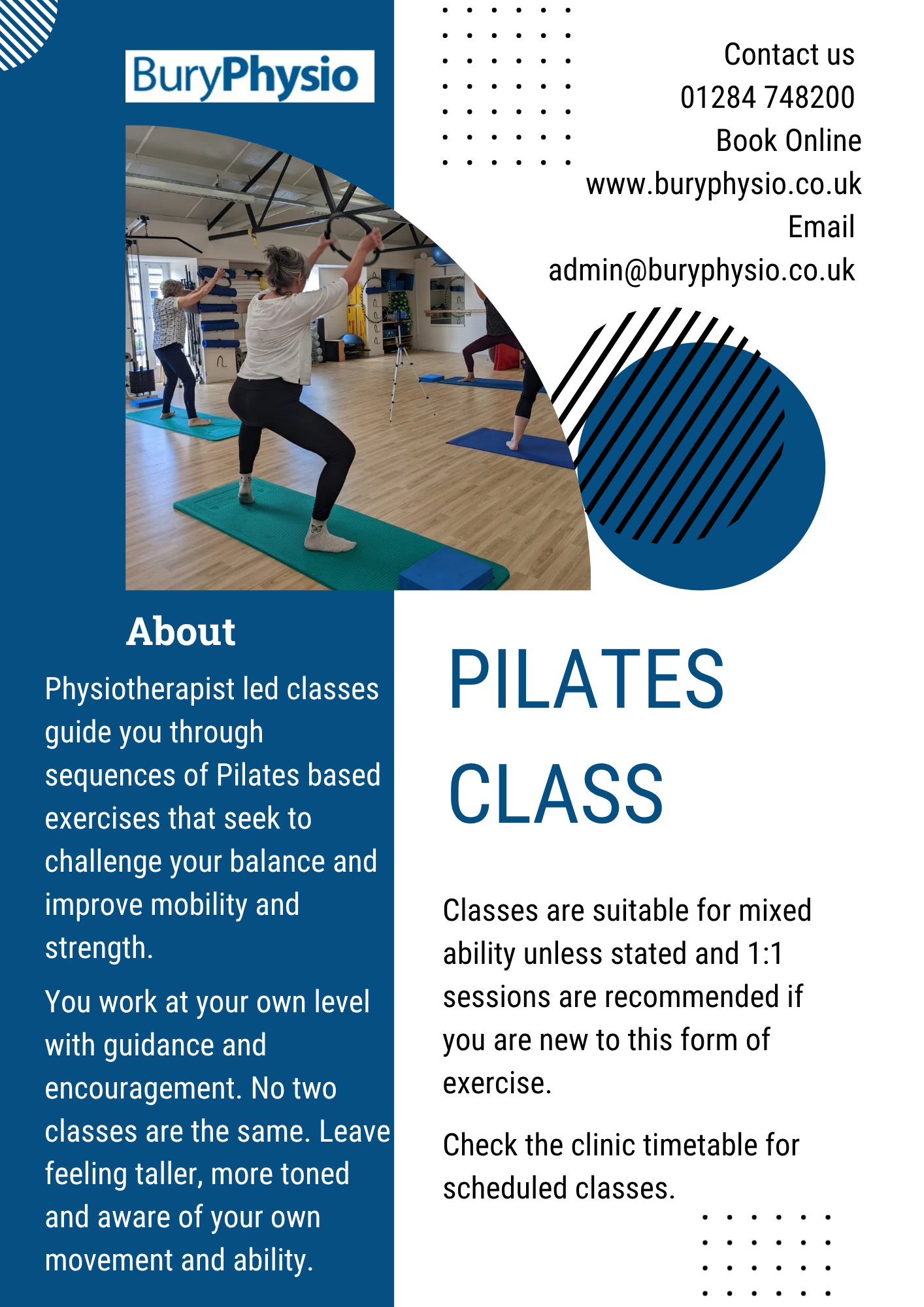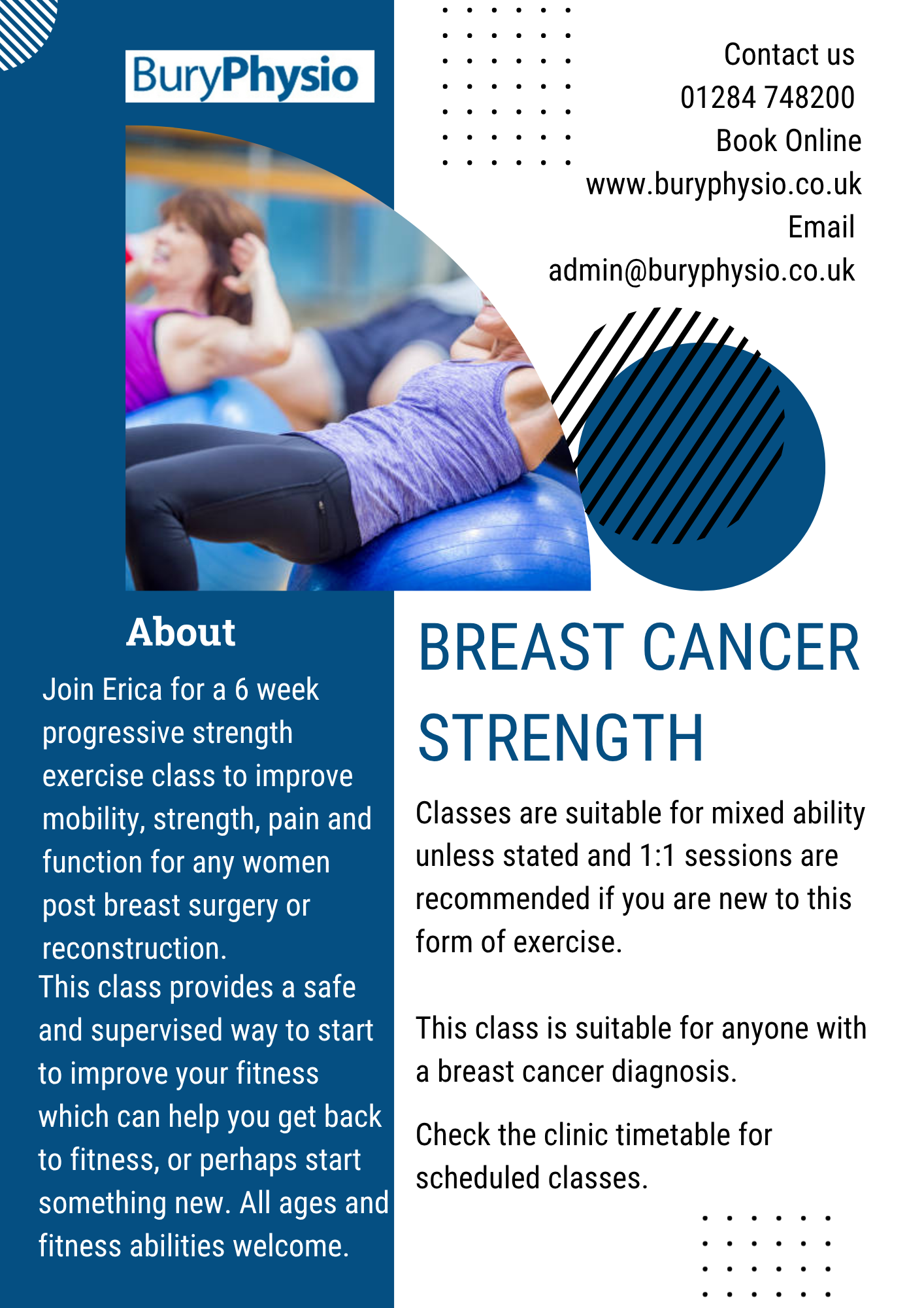 29th October 2025 Classes at Bury Physio Visit out Classes page with information about the current class schedule.