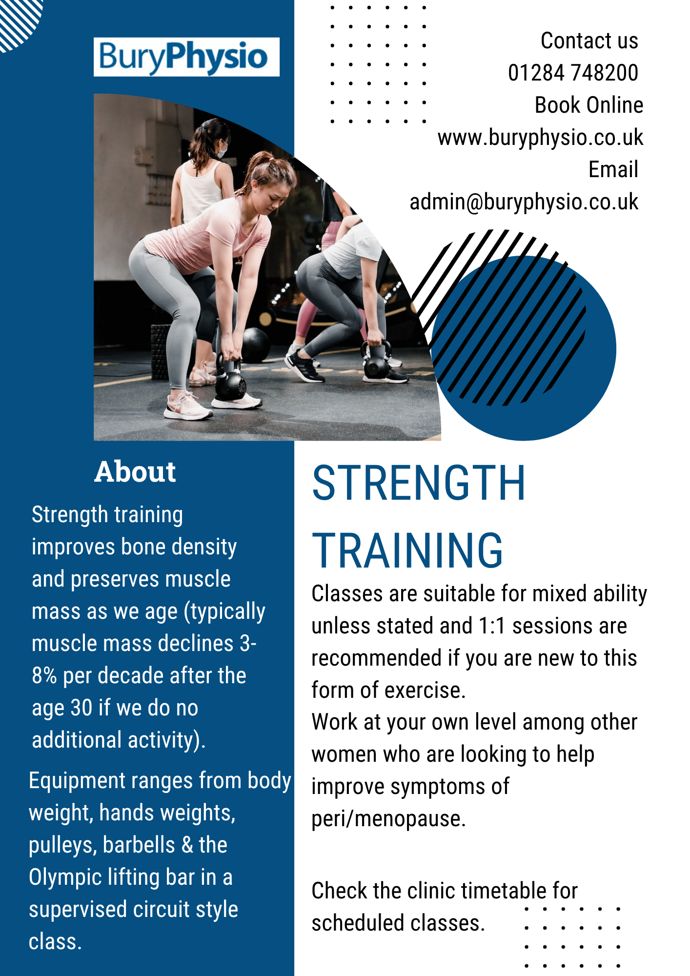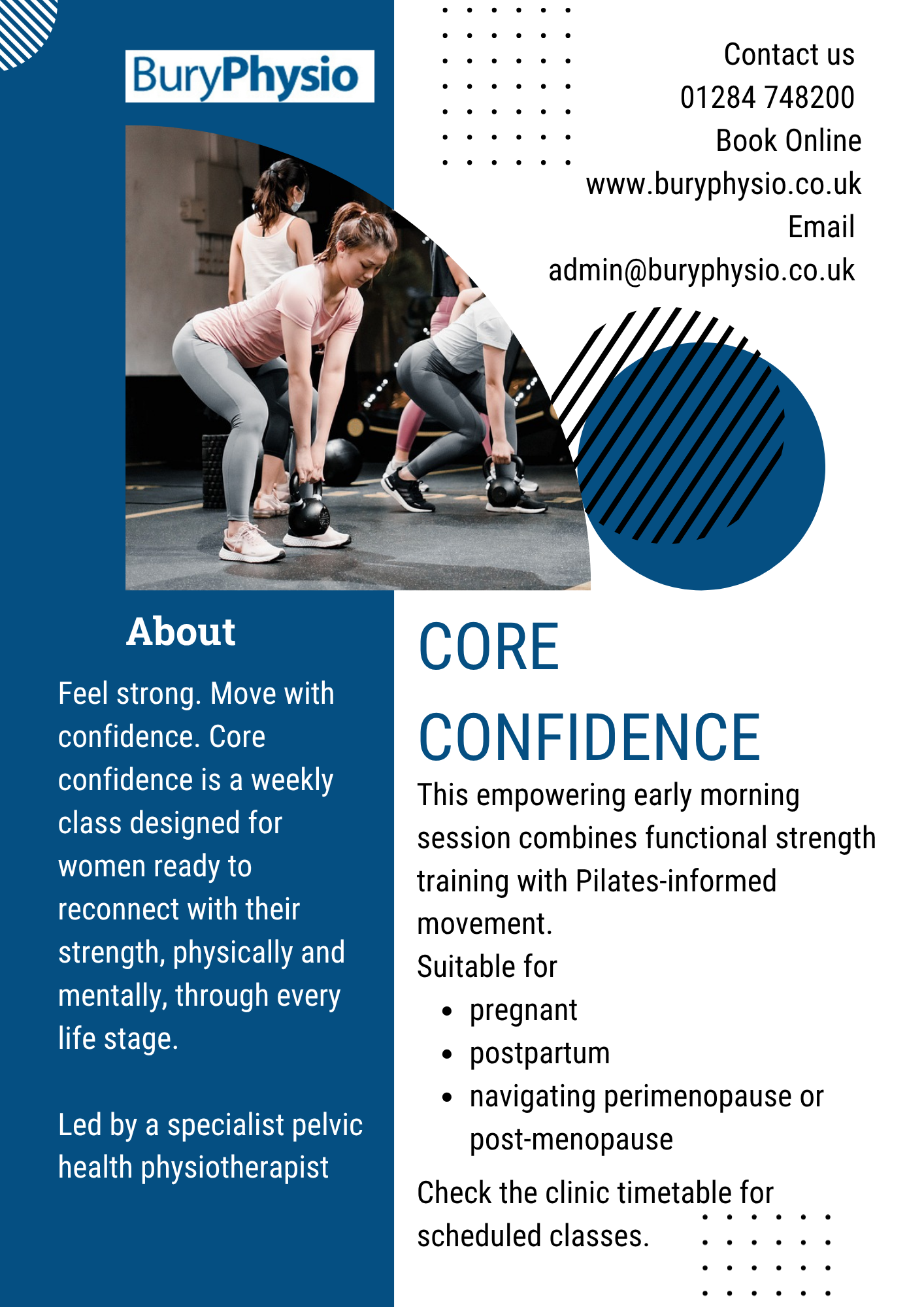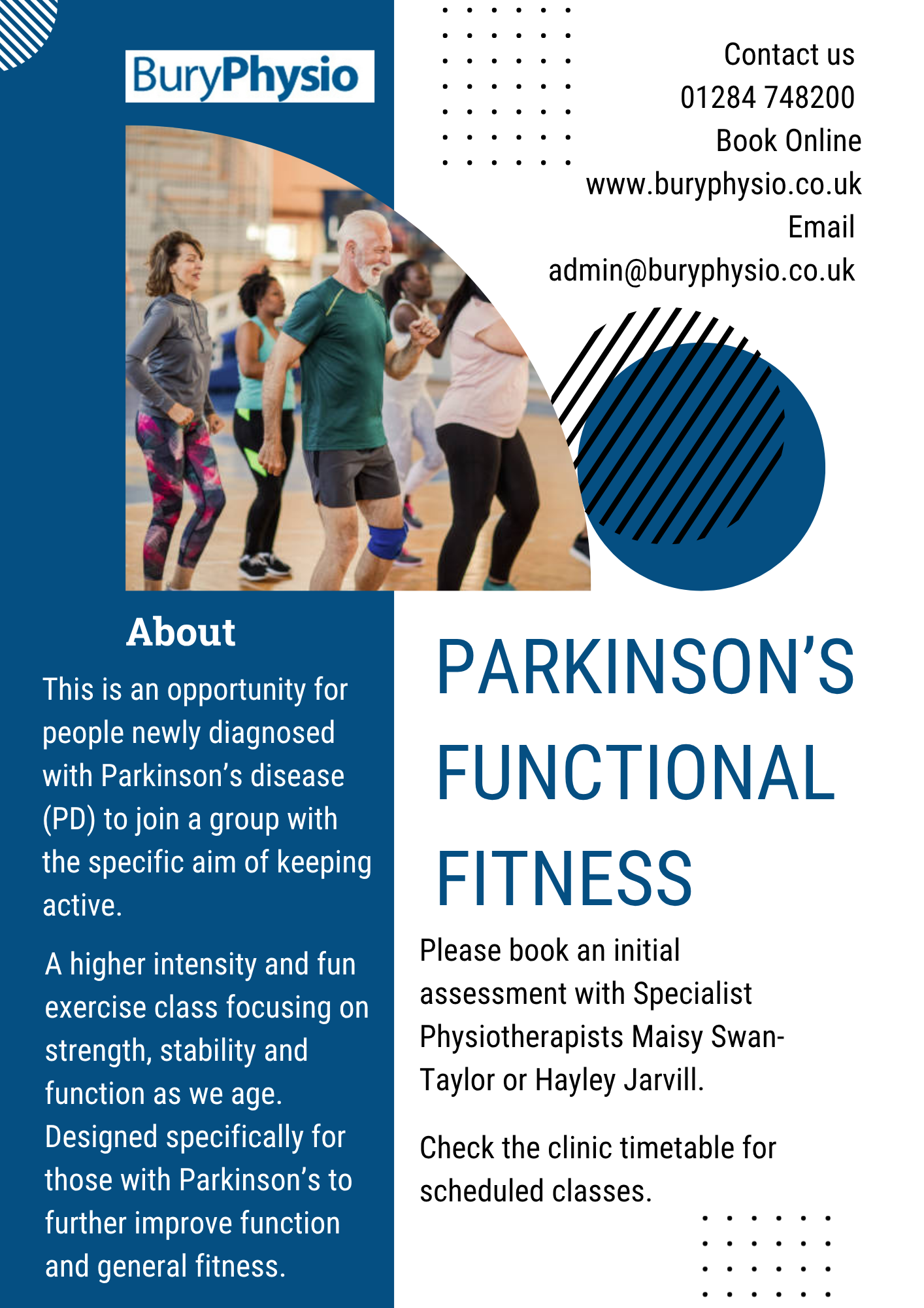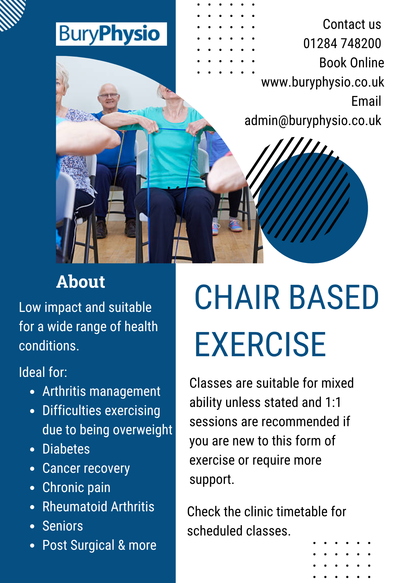 29th October 2025 Classes at Bury Physio Visit out Classes page with information about the current class schedule.