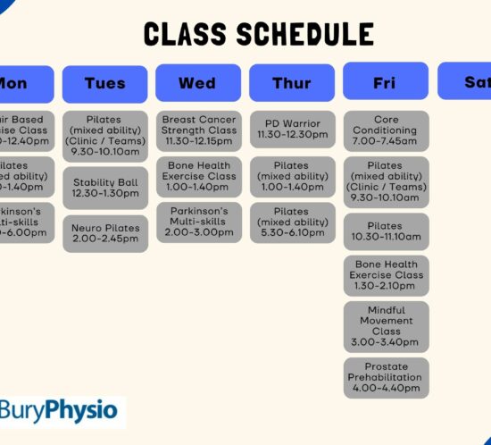 Contact hayley.jarvill@buryphysio.co.uk or call 01284 748200 for further information....