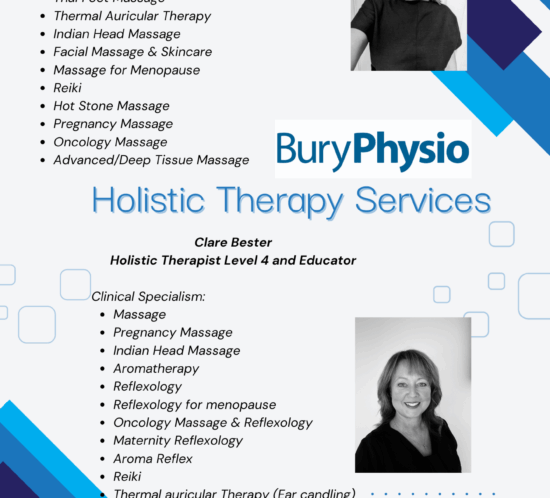 Lorna and Clare will be providing an extensive range of Holistic therapy services at Bury ...