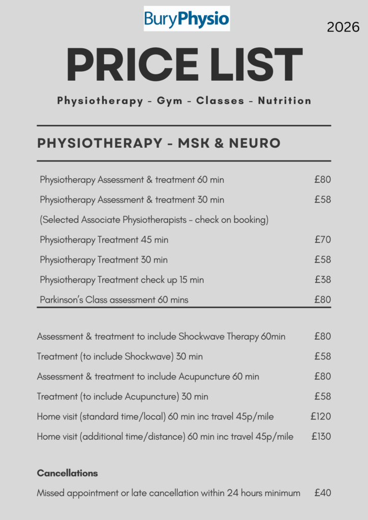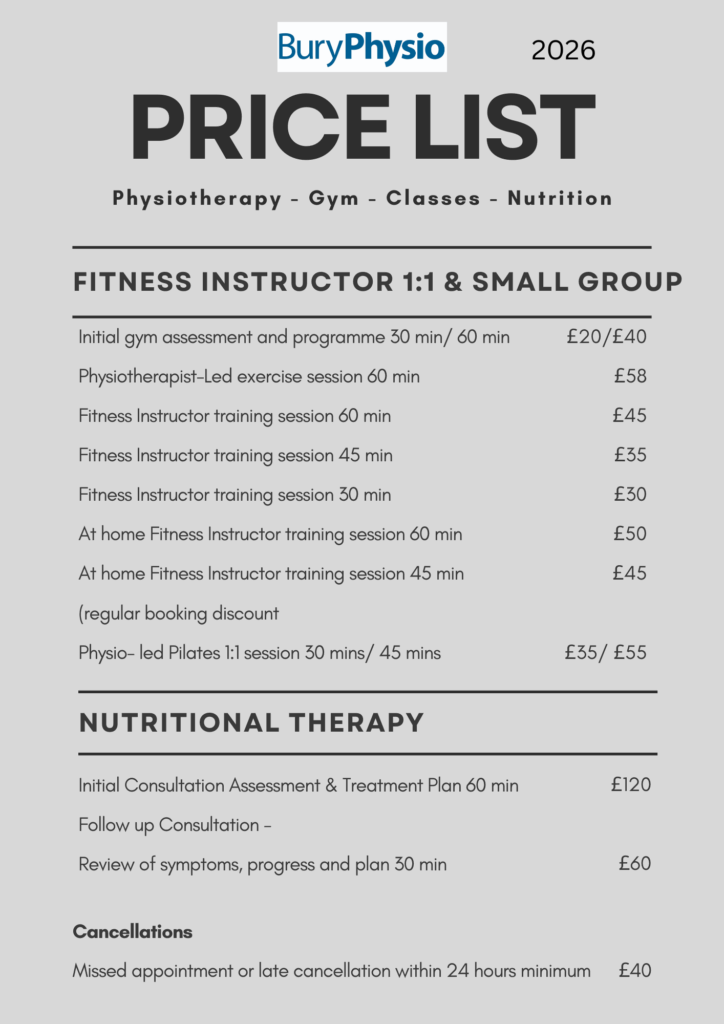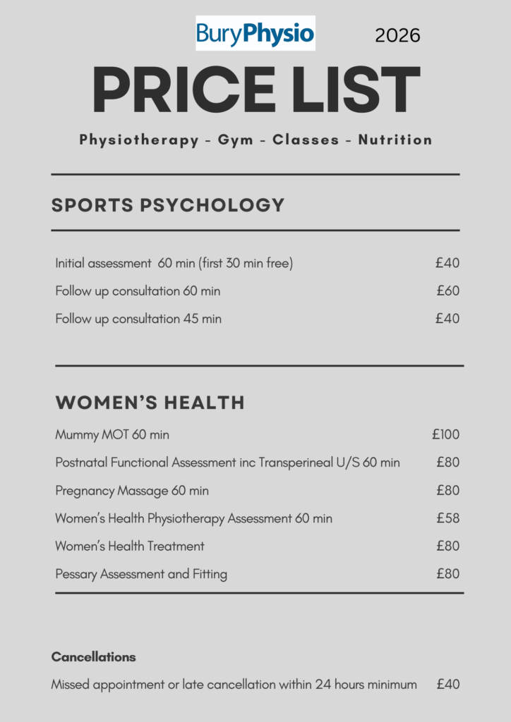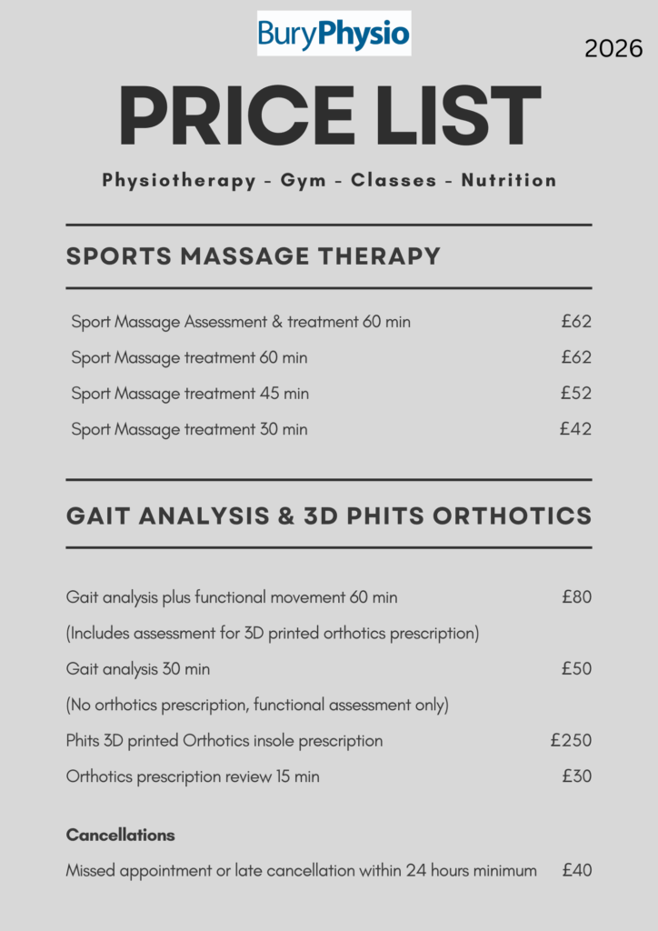 Our physiotherapists professional liability insurance is provided by the Chartered Society of Physiotherapists.