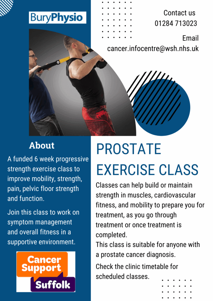 Contact your CNS Cancer Nurse Specialist, Oncology Physiotherapist Angela Jiggins, or speak to Julie Parker or Macmillan Navigators at the Macmillan Centre for further information about a referral to Bury Physio.